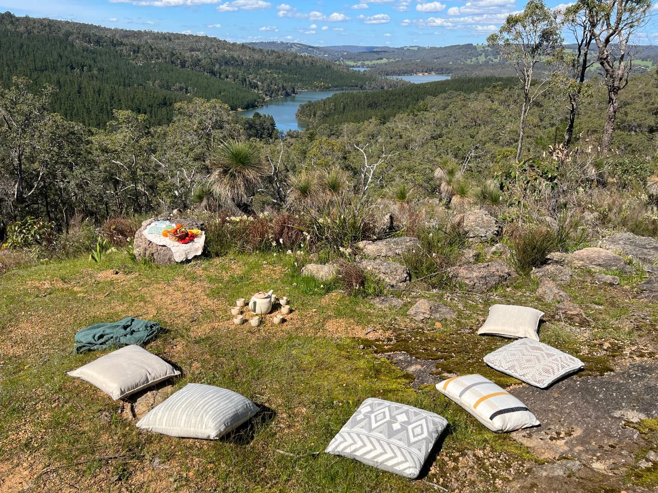 The experience is a gentle 1.4km walk through grass trees, bushland, and rocky outcrops, taking in the breath-taking views of the hills, Harvey Dam, and the coastal plains to the ocean. Throughout the experience, you will be supported by a qualified coach and mentor to discover your true nature and reflect on your experiences.
